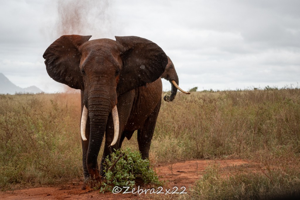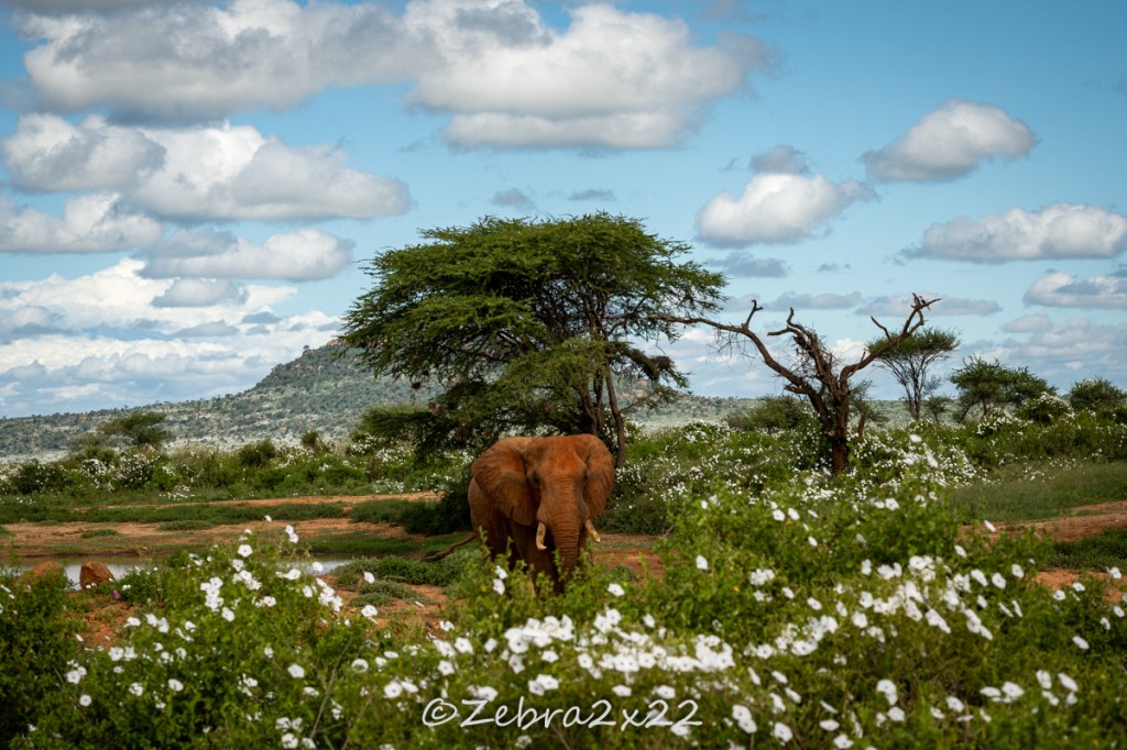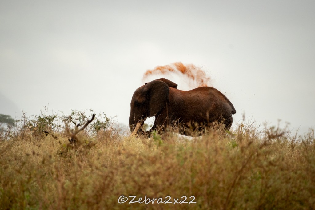 We saw elephants as well, much easier to spot. The particularity of those elephants in that area of Kenya is their skin. It looks red. This is due to the colour of the soil as they are practicing mud bath to protect themselves from the sun.
