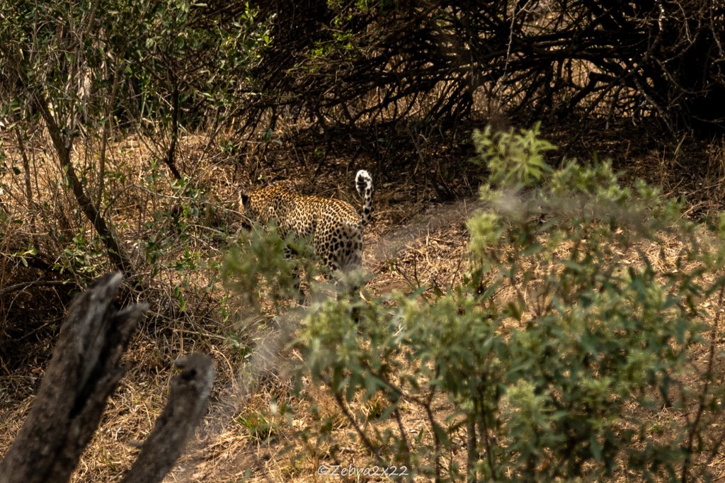 One of our goals was to see a leopard, and we were lucky to spot one in Kruger. It lasted only 30 seconds; the bush seemed to come alive, with alarm calls echoing all around, and then the leopard disappeared. We also saw an impala carcass in a tree, a clear sign of leopard activity.