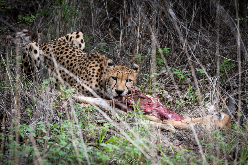 Nothing is wasted in this process, even if it hasn’t been eaten by the cheetah, the carcass is used for other purposes and nothing is wasted in the process. It will be brought to our bait site for the injured and snared hyenas.